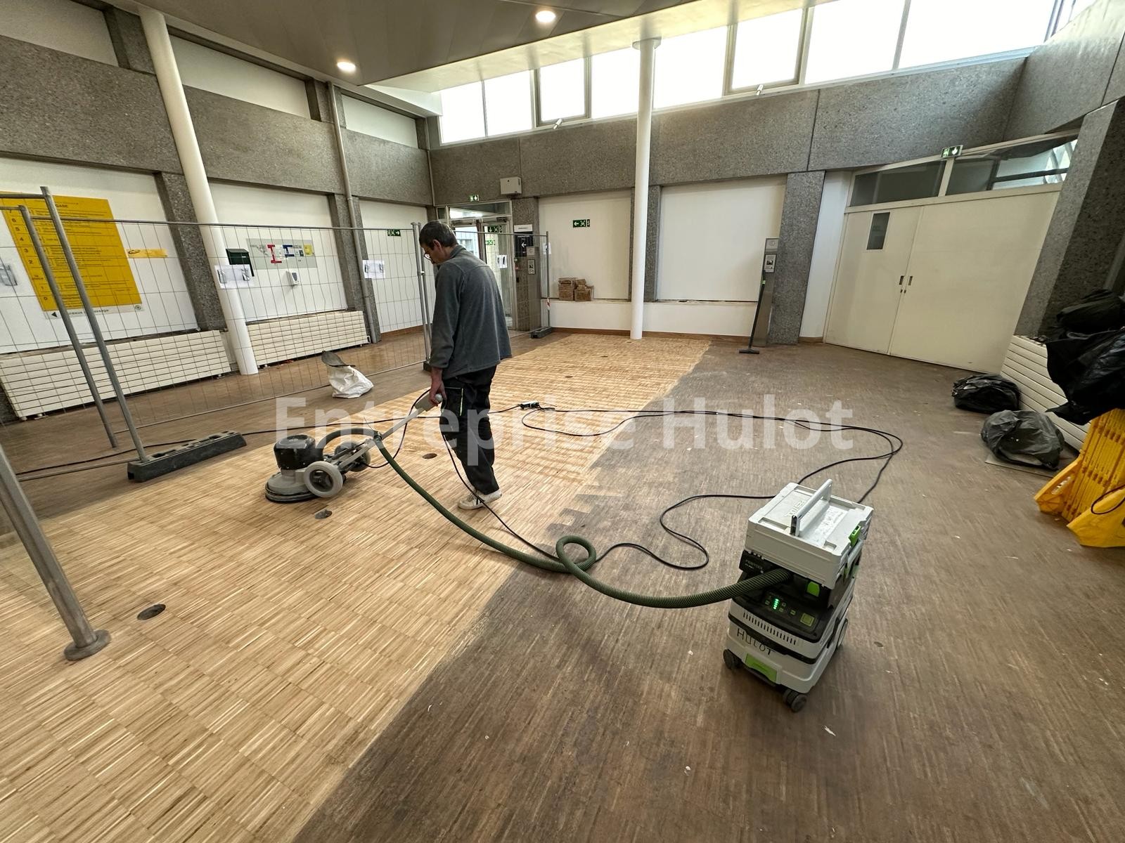 Sur ce chantier, nous avons réalisé la réparation en insertion d’un parquet massif posé sur chant au siège Air France à Roissy.