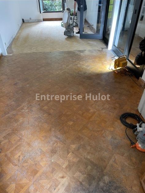Rénovation d’un très vieux parquet à Le Raincy avec Parquet Hulot, expert en parquet ancien.