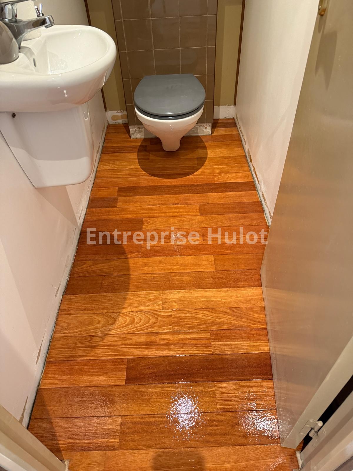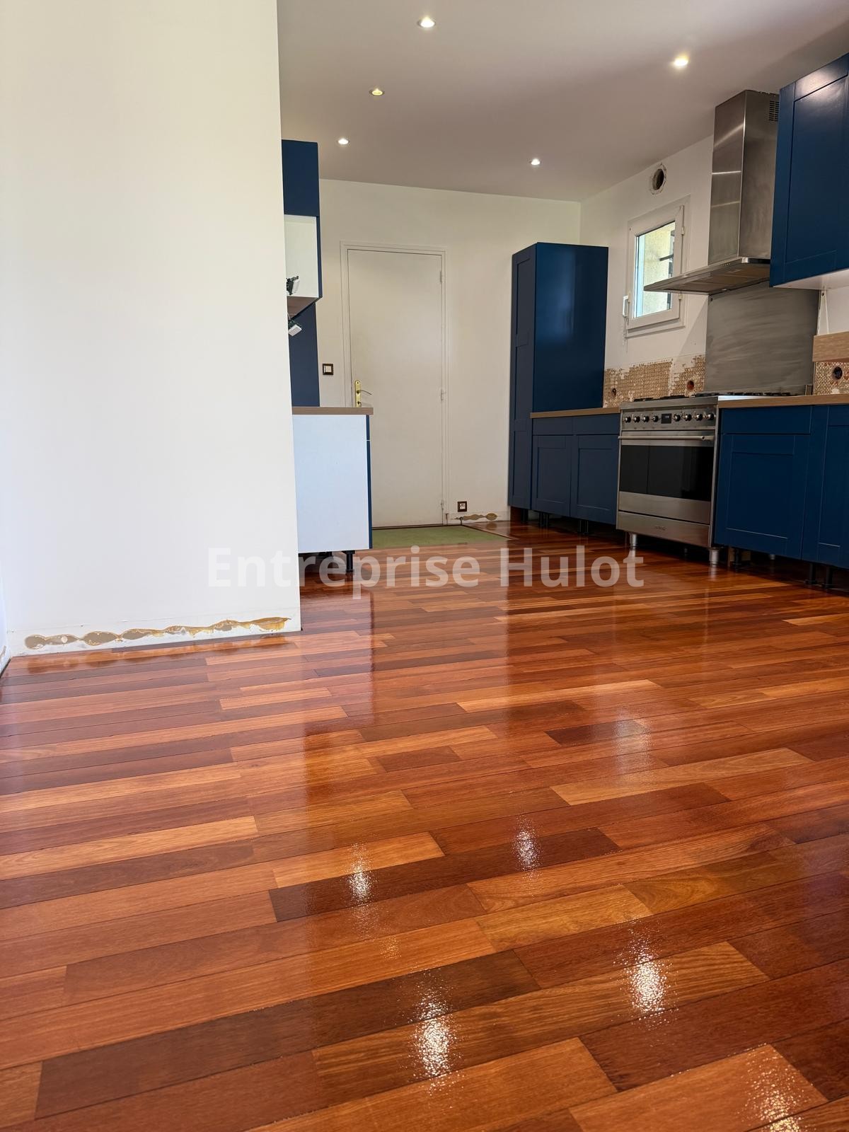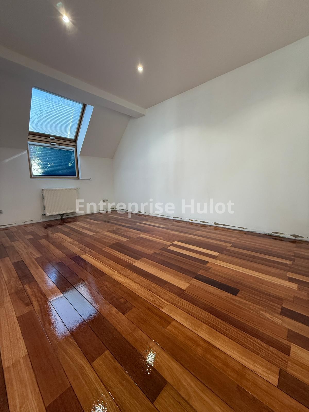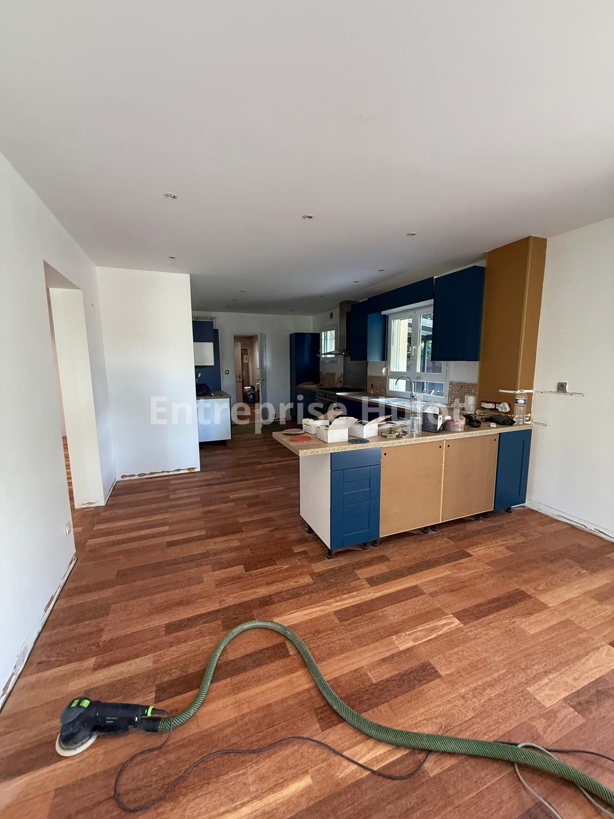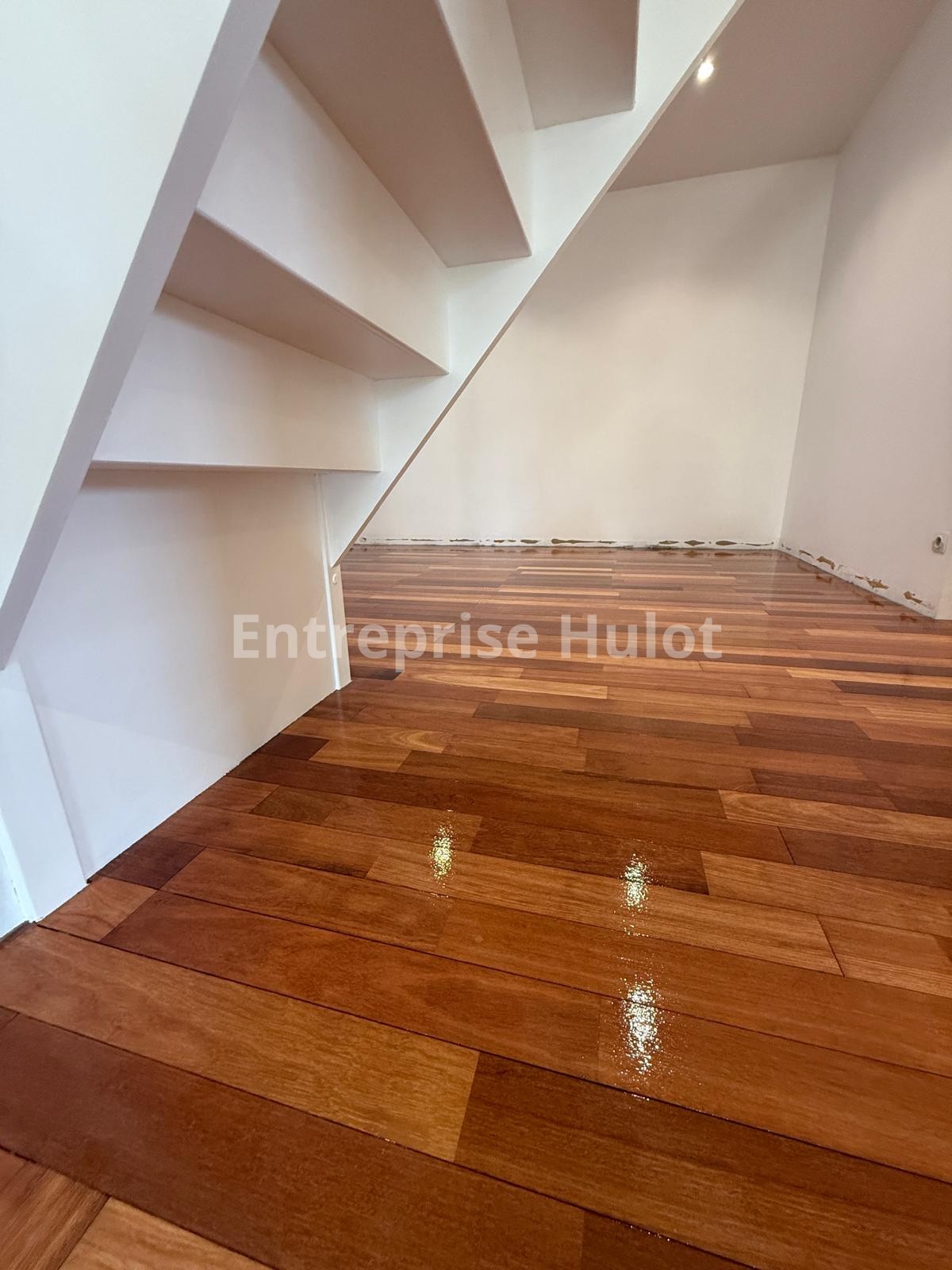 Nous avons réalisé un chantier de rénovation d’un parquet en bois exotique, l’un des plus techniques à travailler : le teck. Ce parquet, situé à Saint-Germain-en-Laye, demandait une remise en état complète afin de retrouver tout son éclat et sa solidité. Grâce à un ponçage minutieux et une finition adaptée aux particularités de ce bois noble, le sol a retrouvé son aspect chaleureux et sa durabilité. Cette intervention illustre parfaitement notre savoir-faire dans la rénovation des parquets haut de gamme et résistants.